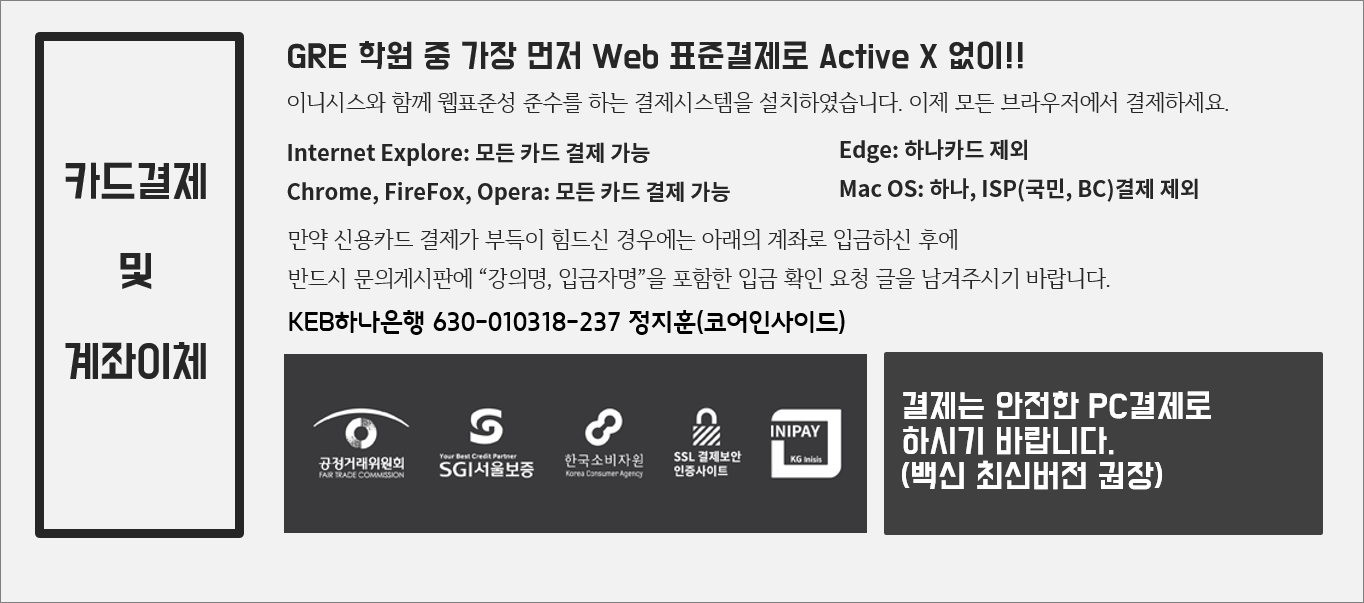 ▶ 저희 강의는 시험의 특성상 수강 중지가 불가능합니다. 구매 전 자신의 시험 일정을 확인하시기 바랍니다.