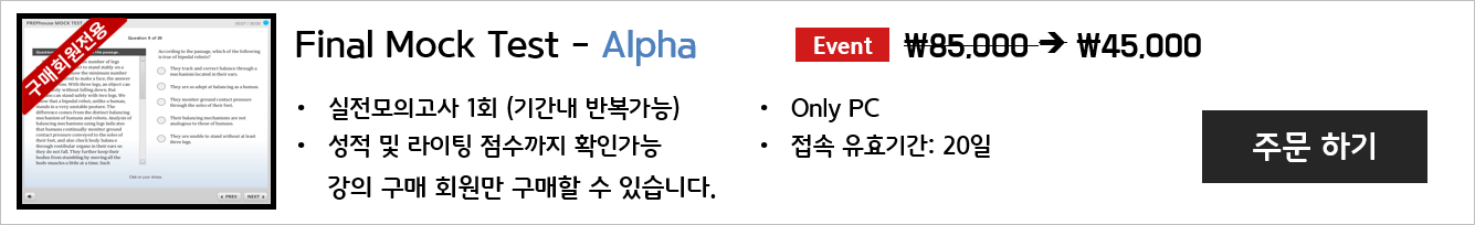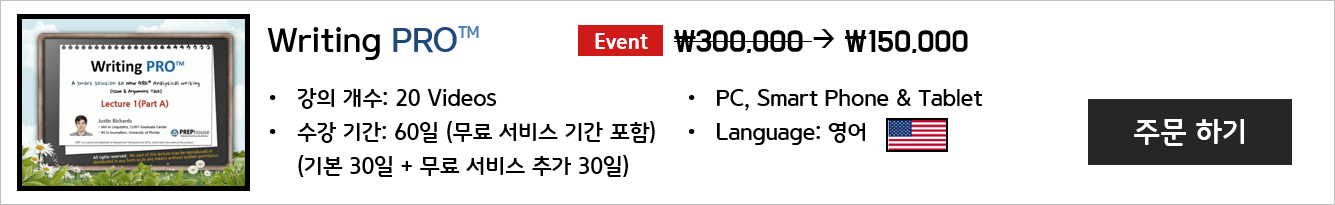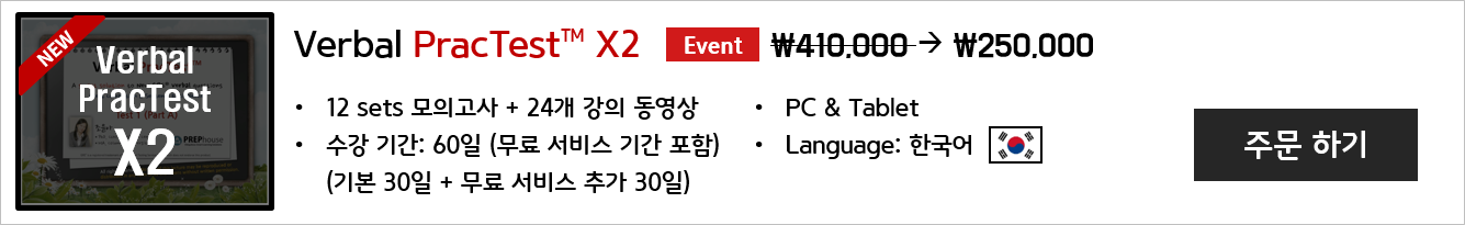 ▶ PREPhouse의 회원들은 꼭 조윤아의 New GRE 카페에 가입하세요. 오직 회원들을 위한 자료를 받으실 수 있습니다. (카페로 이동하기)