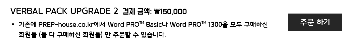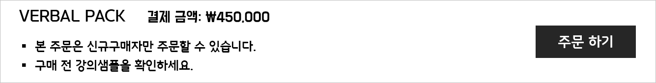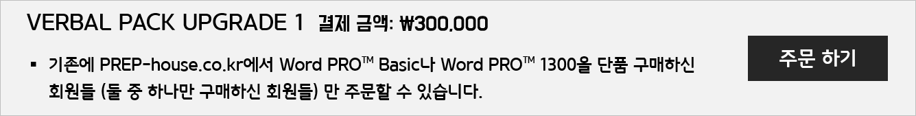 ▶Verbal PACK 추가주문은 Word PRO Basic, 1300 강의의 수강기간 내에서만 추가주문이 가능합니다. 이 점 유의하시기 바랍니다.