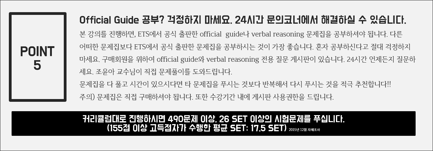 Q: Verbal Section 문제는 PREPhouse의 강의로 충분한가요?